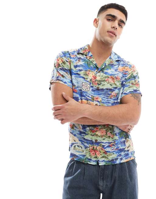 Polo Ralph Lauren - Klassiek overhemd van rayon met korte mouwen, reverskraag en print in multi