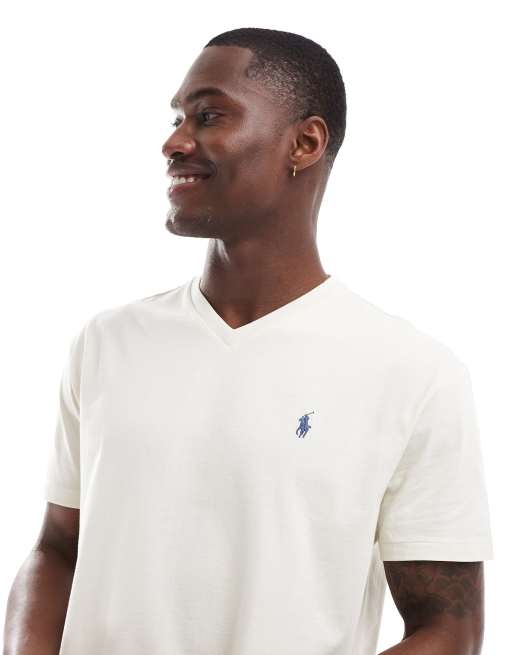 Polo Ralph Lauren - Klassiek oversized T-shirt met V-hals en icoonlogo in crème