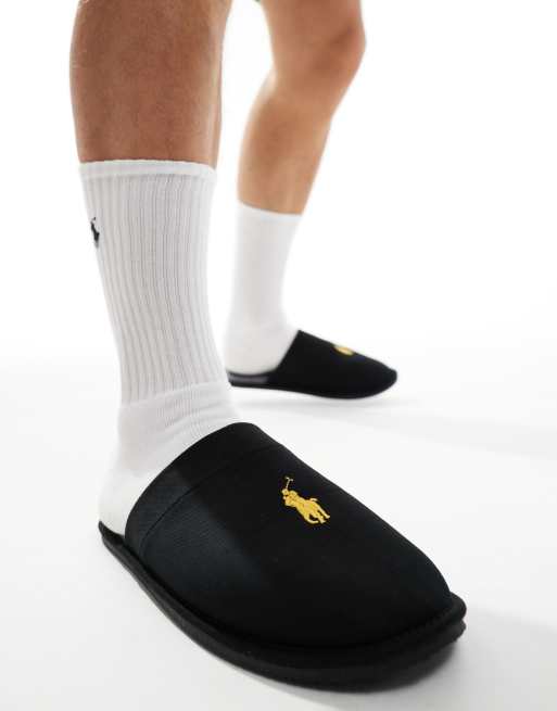 Polo Ralph Lauren - Pantoffels in zwart met goudkleurig logo
