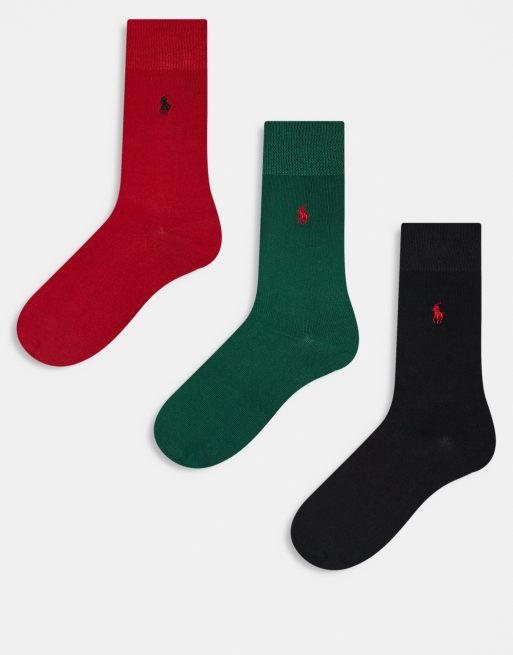 Polo Ralph Lauren - Set van 3 paar geribbelde sokken met logo in zwart, rood en groen