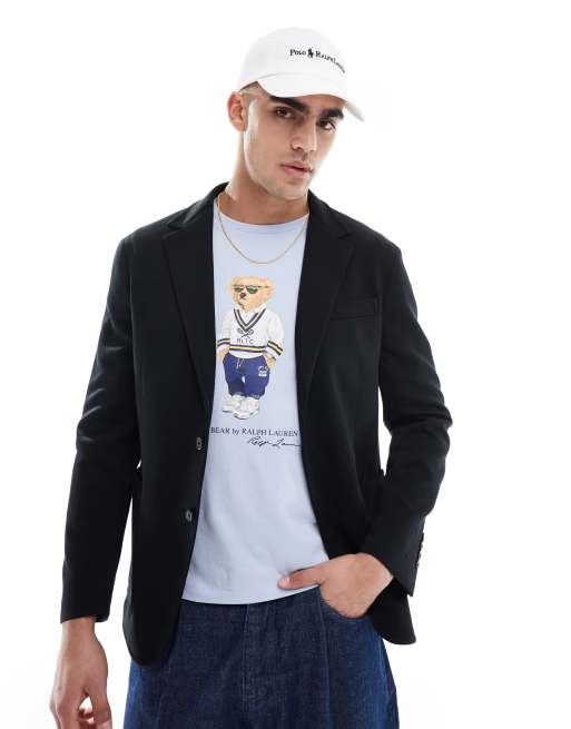 Polo Ralph Lauren - Single breasted, dubbele technisch gebreide blazer in zwart