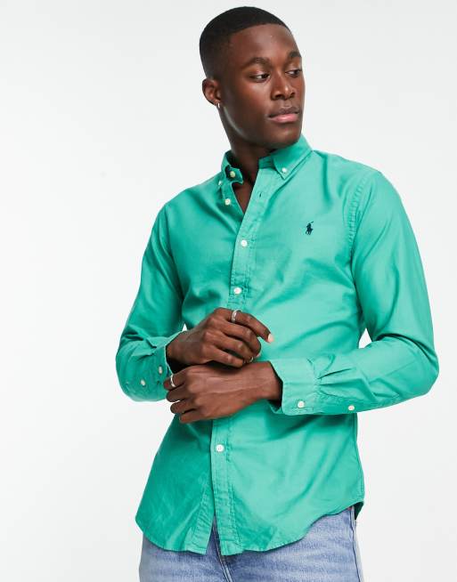 Polo Ralph Lauren - Slim-fit geverfd oxford overhemd in middengroen