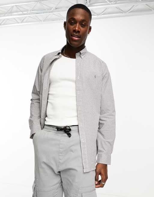 Polo Ralph Lauren - Slim-fit poplin overhemd met stretch, icoonlogo en ruiten in loftgrijs met wit