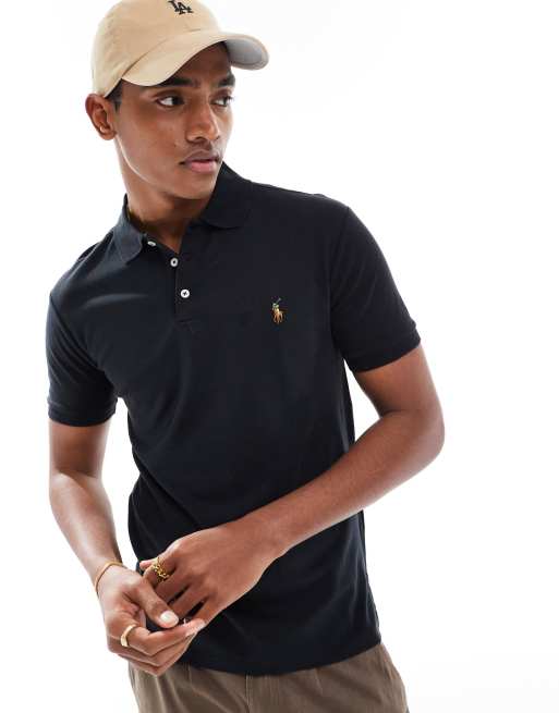 Polo Ralph Lauren - Slim-fit polo van pimakatoen met multi spelerlogo in zwart
