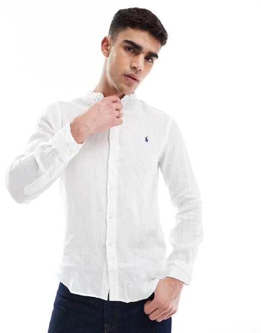 Polo Ralph Lauren - Smal linnen overhemd met icoonlogo zonder kraag in wit