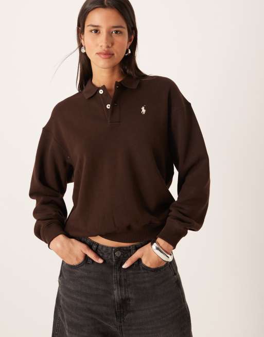 Polo Ralph Lauren - Sweatshirt met kraagje en logo in bruin