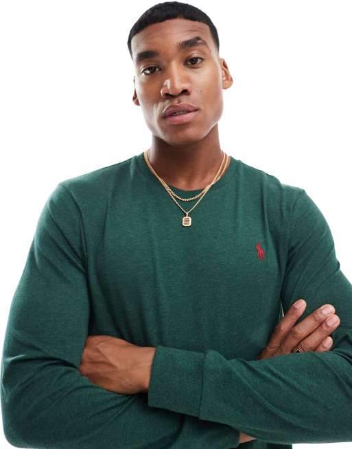 Polo Ralph Lauren - T-shirt met lange mouwen en logo in gemêleerd donkergroen