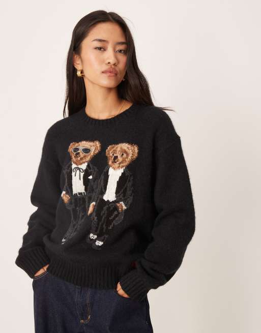 Polo Ralph Lauren - Trui van wolmix met feestelijke bear-print in zwart