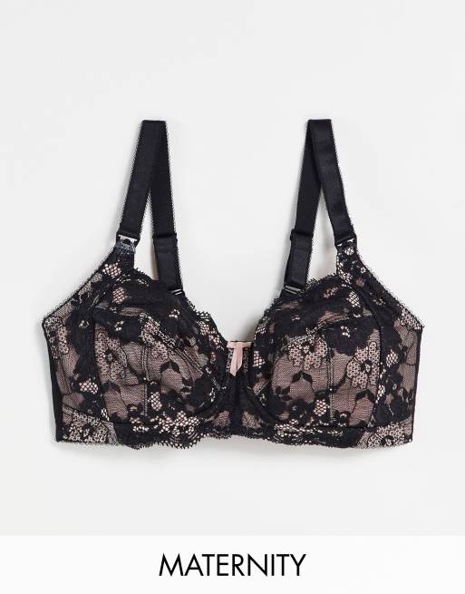 Pour Moi - Amour - Diepuitgesneden kanten borstvoedingsbeha in zwart en roze