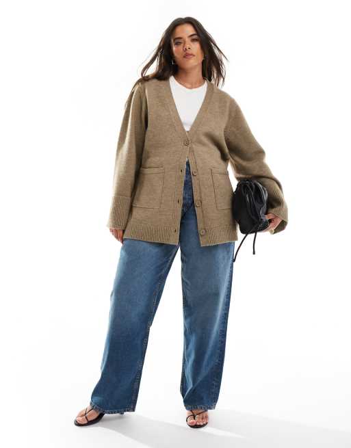 Pretty Lavish Curve - Gebreid vest met grove manchetten in taupe
