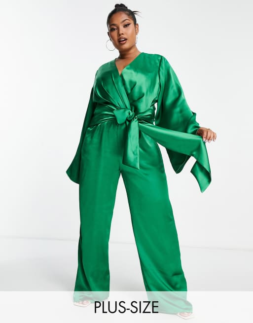 Pretty Lavish Curve - Jumpsuit met geknoopte voorkant in smaragdgroen