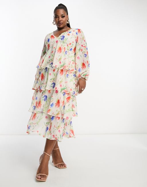 Pretty Lavish Curve - Midaxi jurk met ruche in ivoor met bloemenprint