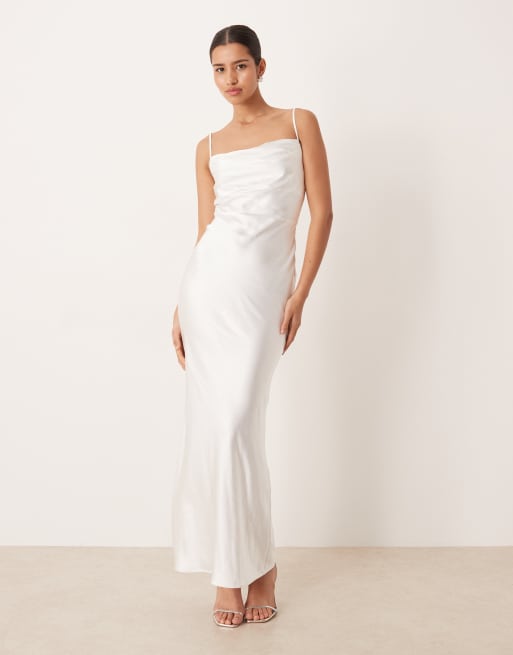 Pretty Lavish - Bruidskleding - Keisha - Gedrapeerde satijnen maxi cami-jurk met gedrapeerde halslijn in ivoorwit