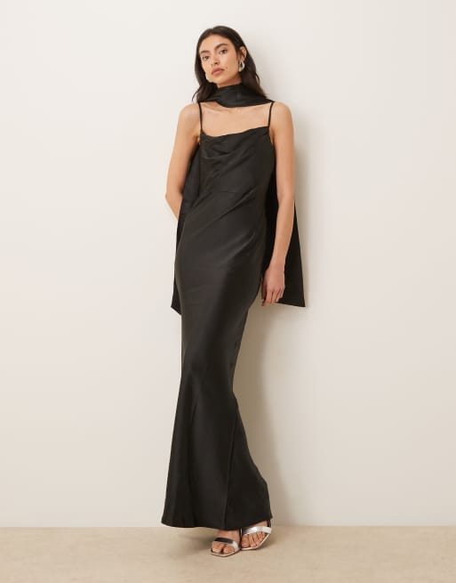 Pretty Lavish - Bruidsmeisjes - Keisha - Satijnen maxi-jurk met gedrapeerde halslijn en sjaal in zwart