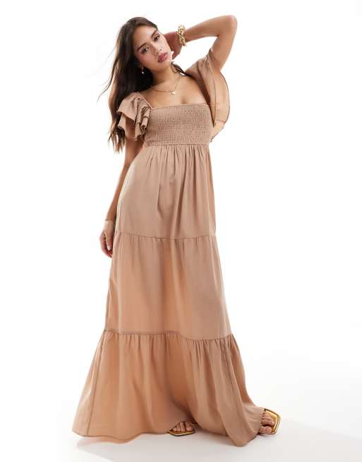 Pretty Lavish - Gerimpelde maxi jurk met ruchemouwen in biscuit