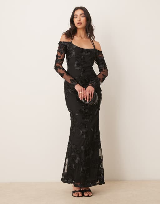 Pretty Lavish - Jamila - Midaxi jurk met lange mouwen in zwarte bloemenprint