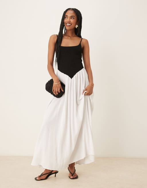 Pretty Lavish - Maude - Gesmokte maxi jurk met contrast in zwart en crème