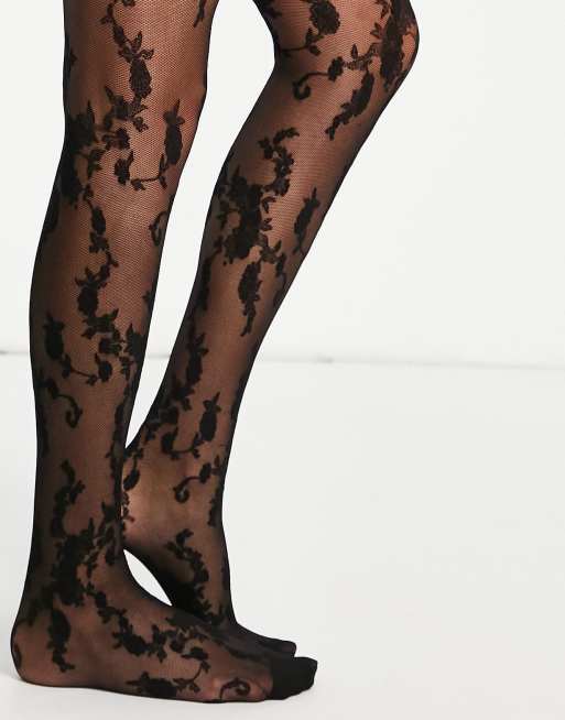 Pretty Polly - Panty van mesh met bloemen in zwart