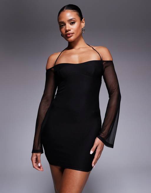 Princess Polly - Acosta - Bodycon mini jurk met mesh mouwen in zwart