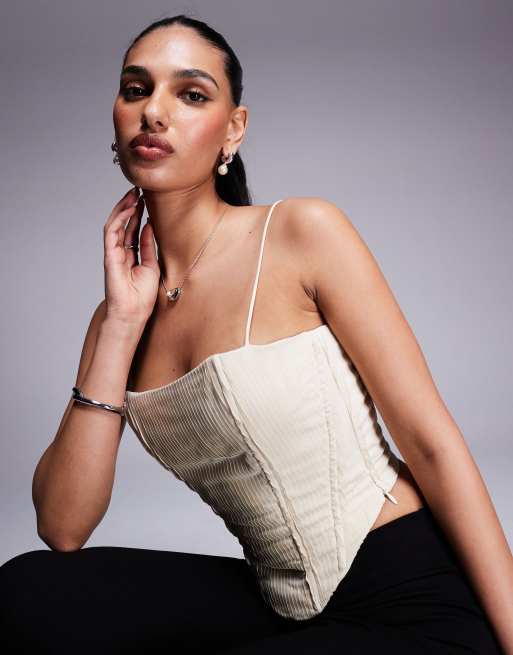 Princess Polly - Geplooide korsettop met veters aan de achterkant in crème