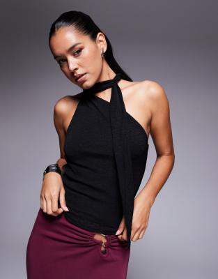 Princess Polly - Mathias - Fijngebreide top met sjaalstrik in zwart
