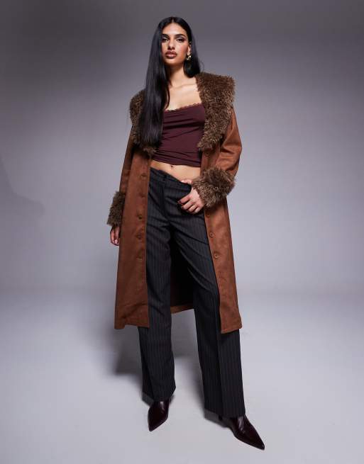 Princess Polly - Penny Lane - Jas met oversized kraag en manchetten van imitatieschapenvacht in bruin
