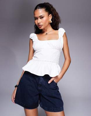 Princess Polly - Somi - Peplum top met kapmouwtjes en kanten afwerking in wit