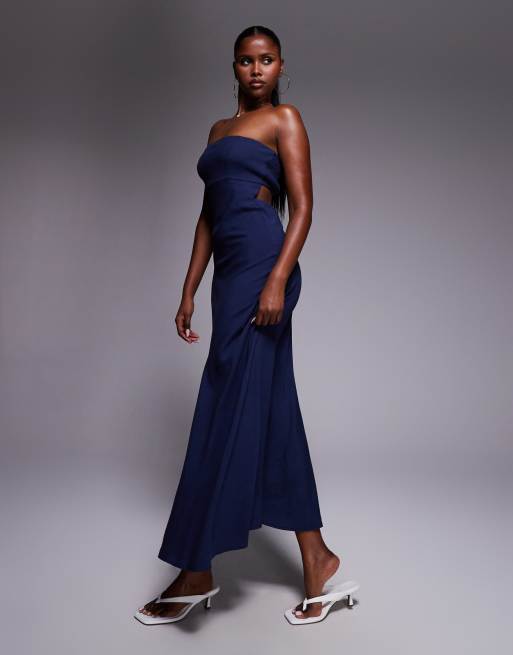 Princess Polly - Yahir - Maxi bandeau-jurk van linnenmix met gesmokte achterkant en uitsnijding in marineblauw