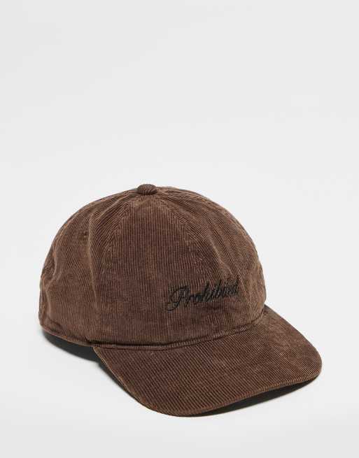 Prohibited - Gebogen pet van corduroy met logo in bruin