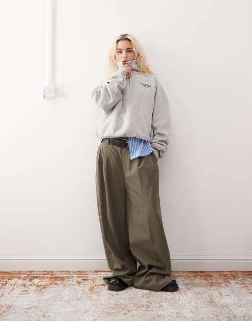 Prohibited - Sweatshirt met halve rits en geschreven logodetail in grijs