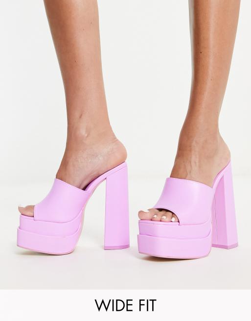 Public Desire Wide Fit - Sandalen met hak en extra hoge plateauzool in roze