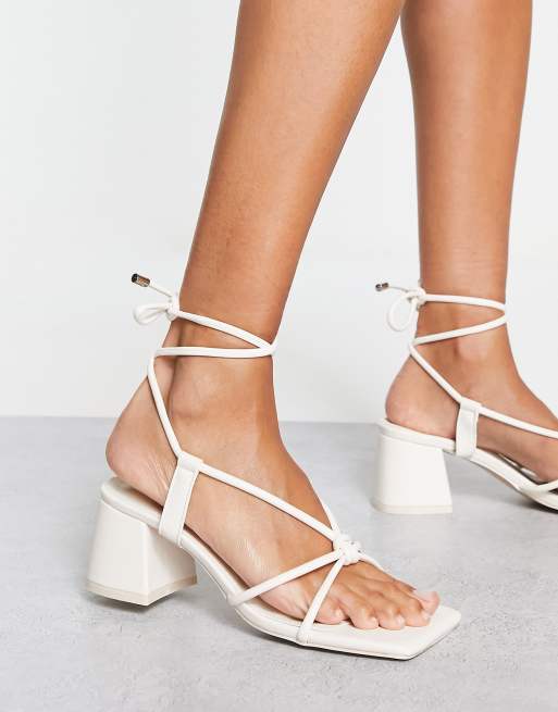 Public Desire - Aloha - Sandalen met strikbandjes, knoop en halfhoge hak in gebroken wit