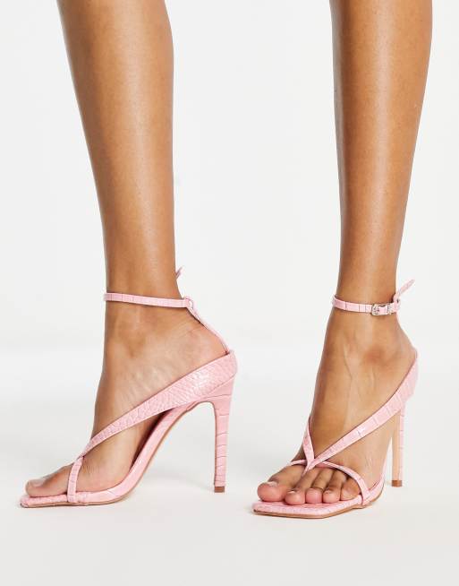 Public Desire - Emilia - Sandalen met hak, vierkante neus en krokodillenmotief in roze