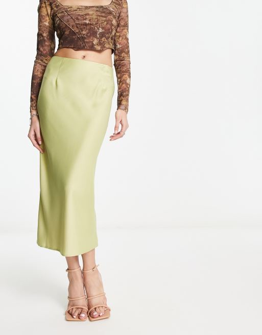 Public Desire - Midi-sliprok van satijn in limoengroen