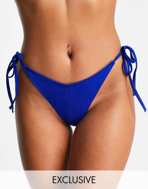 Public Desire - Mix en match - Hoog opgesneden geribbelde bikinibroekje met gestrikte zijkanten in blauw