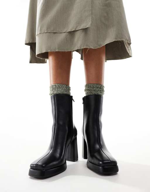 Public Desire - Patty2 - Enkellaarzen met vierkante neus, plateauzool en hak in zwart