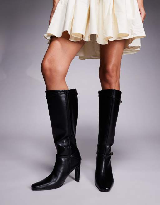 Public Desire - Poppy - Kniehoge laarzen met hak en gesp in zwart