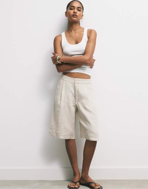 Pull&Bear - 100% linnen bermuda shorts in lichtbruin