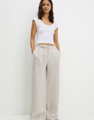 Pull&Bear - 100% linnen broek in lichtbruin