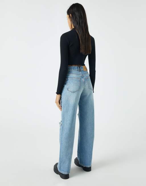 Pull&Bear - 90s jeans met rechte pijpen en scheuren in blauw