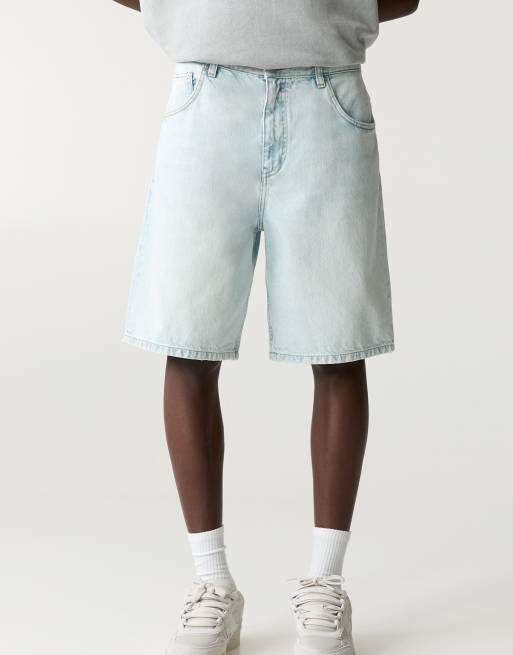 Pull&Bear - Baggy denim bermuda shorts in licht indigo