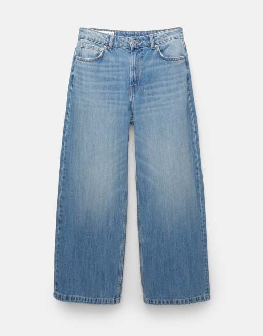 Pull&Bear - Baggy jeans met halfhoge taille in medium blauw