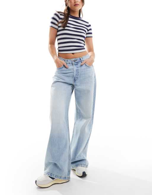 Pull&Bear - Baggy oversized jeans met wijde pijpen in lichtblauw