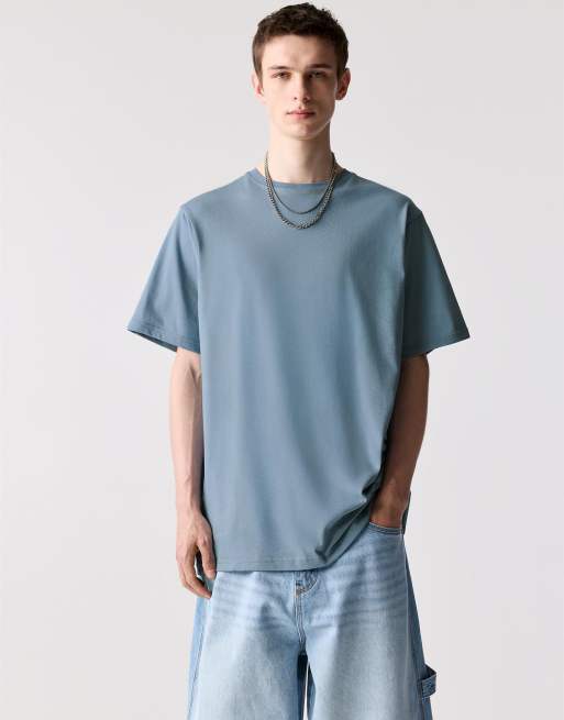 Pull&Bear - Basic katoenen T-shirt met korte mouwen in blauw