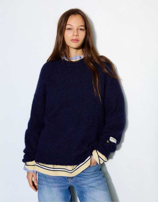 Pull&Bear - Basic trui met ronde hals in marineblauw