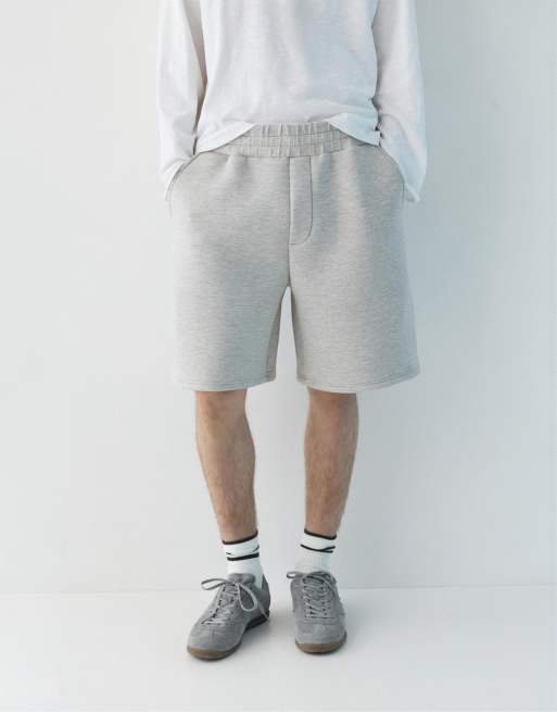 Pull&Bear - Bermuda joggingshort van sweatstof in gemêleerd grijs