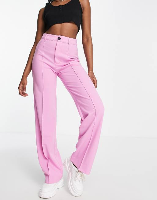 Pull&Bear - Broek met rechte pijpen en hoge taille in roze