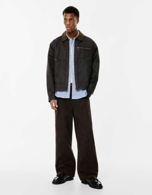 Pull&Bear - Broek met rechte pijpen en textuur in bruin