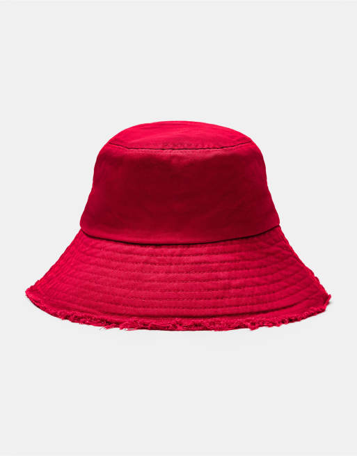 Pull&Bear - Bucket hat met gerafelde zoom in rood