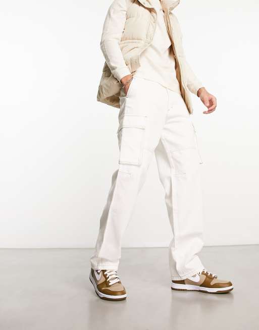 Pull&Bear - Cargobroek met contrasterend stiksel in ecru